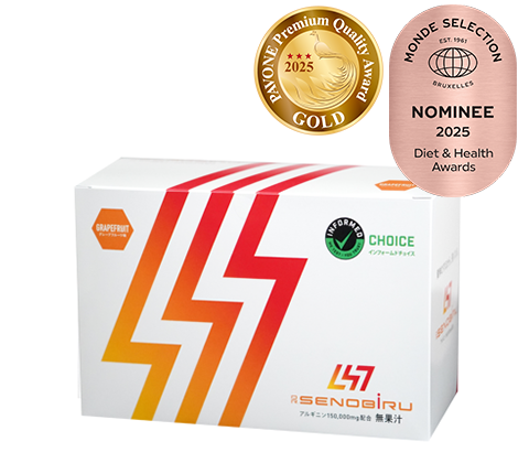 1袋にアルギニン2500㎎、クエン酸2100㎎、そのほかにカルシウム、ビタミン、亜鉛、鉄、GABA、乳酸菌、ビフィズス菌など