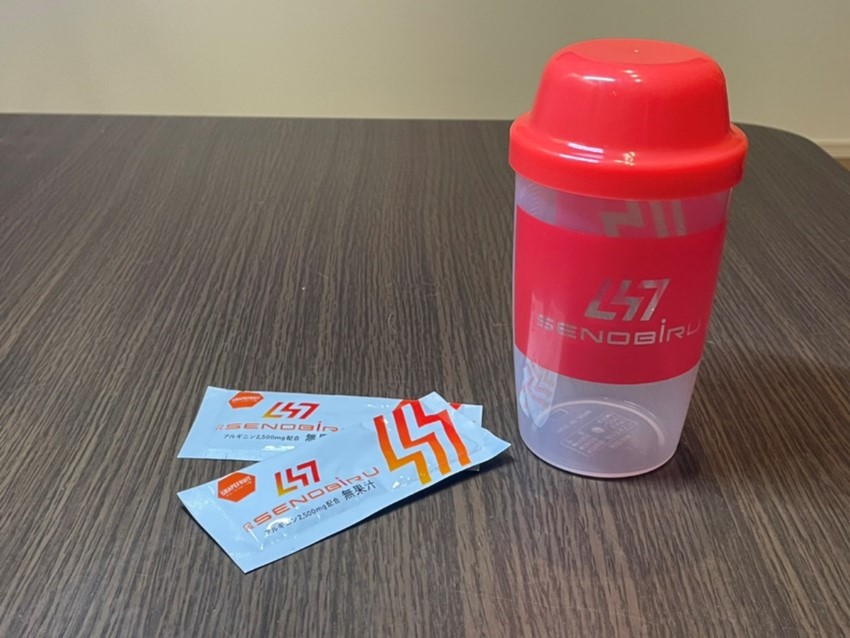 ① まずはシェイカーと個包装されている「DR.SENOBIRU」を用意します