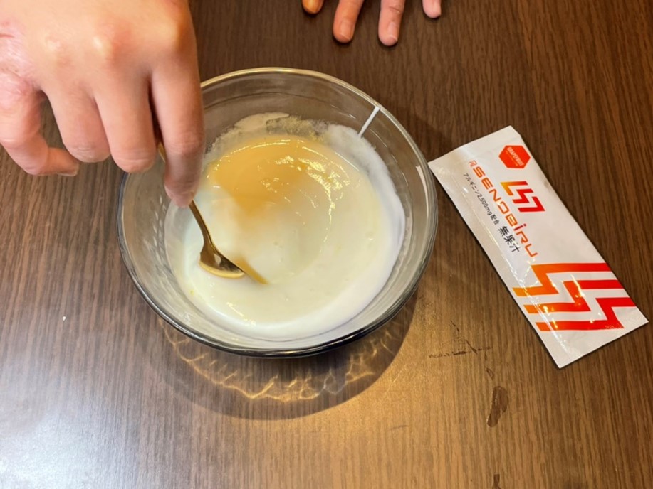 ③ いい感じで「DR.SENOBIRU」もヨーグルトと混ざっています